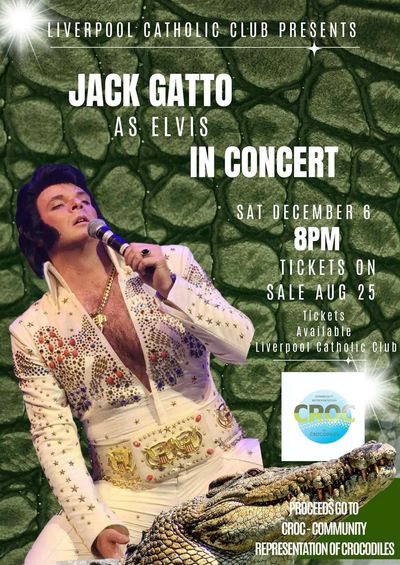 CROC QLD spokesperson Jack Gatto will be performing as an Elvis Tribute at the Liverpool Catholic Club, Sydney. This event is a CROC QLD fundraiser, with all profits from the night being donated to CROC QLD.